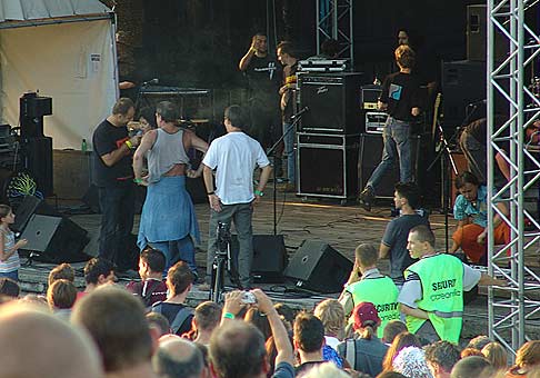 Oslava 60.výročia založenia vydavateľstva Mladá Fronta v Casino Cafe Reduta 7.decembra 2005. V popredi manažérka vydavateľstva MF Slovensko Ing.Ingrid Rievajova. V pozadí hudobná skupina Kuštárovci.